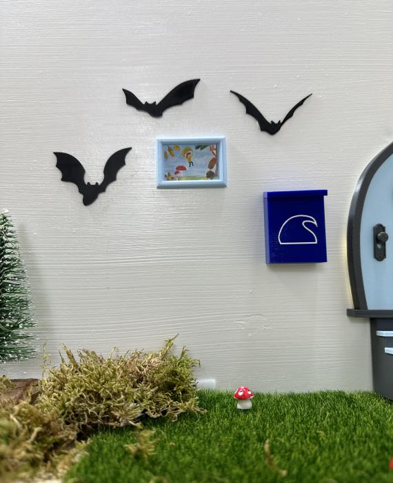 3 Fledermäuse und ein Spinnennetz. Schwarz.