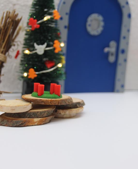 Die Kerzen sind etwas wackelig, aber ansonsten niedlicher Adventskranz für unseren Wichtel.